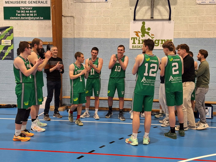Le club remercie Sébastien Louis, joueur en P1 mess et coach de l’équipe P1 dames . Sur la photo, ses potes de l’équipe P1 le congratulent à la fin de sa dernière rencontre gagnée ce vendredi 74/43 contre Musson. Le lendemain, nouvelle victoire des P1 mess contre Chantemelle 87/47. Sébastien , toujours ponctuel et d’une grande gentillesse , quittera notre club pour d’autres horizons. Pas de chance pour la p1 mess qui rate d’un fifrelin sa participation aux play-offs malgré les deux victoires de ce week-end . Il lui manque une victoire par rapport au dernier qualifié soit Rulles. Malgré cela, il faut bien admettre les progrès réalisés cette saison avec un meilleur classement que l’an passé. Bravo à notre jeune team. Nos p1 dames s’imposent à Neufchateau 49/69. Elles joueront bientôt les play-offs et sont en tête de la série. Défaite des P2 dames à St Hubert 57/49, malgré cette défaite, elles terminent aussi en tête de la P2. Les u18 c Gaume B s’inclinent à Habay 112/61 tout comme les u16 CGB contre ST Hubert 46/67 mais les u16 gagnent à Bomal 17/99 .C Gaume B u14 gagne contre Musson 75/58 . Les u14 C Gaume C battent Bastogne 107/62. Tintigny A en u12 perd 33/52 contre Rulles. Rulles qui organisait ce we les all stars et bravo aux jeunes de Tintigny retenus dans différentes catégories. Bravo aussi à l’équipe 3c3 du c Gaume qui termine septième sur 12 dans les finales à Frameries.